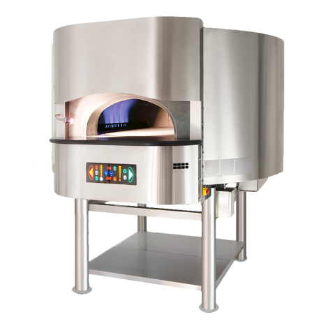 Morello Forni Rotary Pizza Oven, gas, 51" inside cooking diameter, rotating cooking deck, touch screen electronic control system, (23) 8", (12-14) 10", (9-10) 12", (4-5) 16" pizza capacity, 7” thick sealed insulated walls, dual burners system (internal dome burner & under deck, emergency stop button, high refractory premium grade alumina with heavy metal enclosure, stainless steel finish, 220v/60/1-ph, 136,000 BTU, NSF, UL
