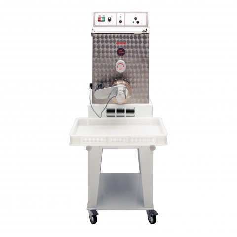 Avancini Pasta Extruder, 28-35 LBS/HR, Electric pasta maker for production of various shapes of pasta, Production Capacity from 28~35 lbs. per hour, Kneeding Capacity 13.2 lbs, Stainless steel construction, Double walled mixing bowl, Safety cut-off switch, Interchangeable pasta die holder, Adjustable speed electric knife cutter, Built-in pasta drying fan, Integrated water cooling system, Mobile rolling cart, Pasta tray, Includes 3 Standard Dies of Customer Choice - See "TR110 Die" in AQ for Catalog of Options