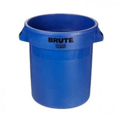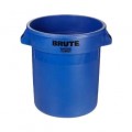 BRUTE® Container, without lid, 10 gallon, 15-5/8 dia. x 17-1/8"H, round, reinforced rims, built in handles, double rimmed base, high-impact plastic construction, blue, NSF, Made in USA