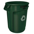 BRUTE® Recycling Container, 32 gallon, 22" dia. x 27-1/4"H, round, without lid, green, Made in USA