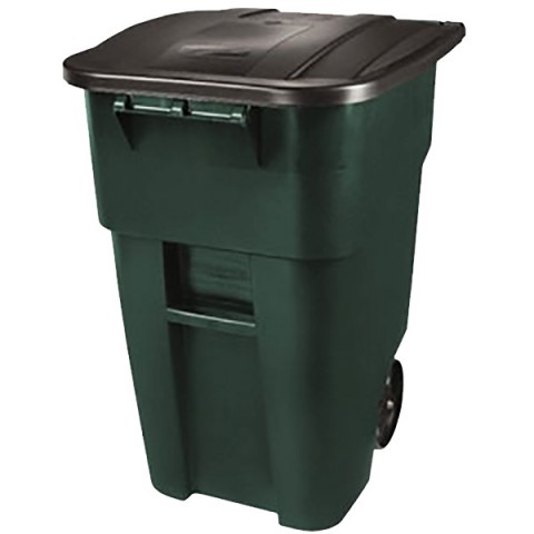BRUTE® Roll-Out Container, 50 gallon, 28-1/2" x 23-3/8" x 36-1/2" H, with lid, green, Made in USA