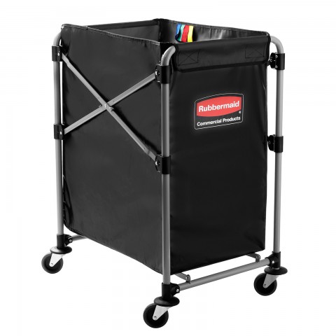 Executive Collapsible Basket X-Cart, 4 bushel capacity (up to 220 lb. capacity), 24-1/10"L x 20-3/10"W x 34"H, detachable black vinyl bag, stainless steel powder-coated frame, (4) swivel casters with bumper guards