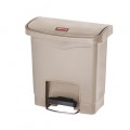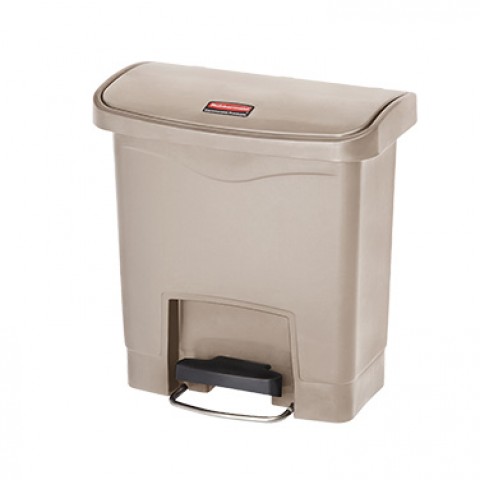 Slim Jim® Utility Container, 4 gallon (15 liter), 14-53/64"W x 9-2/32"D x 15-11/16"H, slim profile, internal hinged lid, includes: liner retainer band, front step-on pedal, small footprint, indoor, resin, beige, FM approved, meets OSHA & OBRA standards, Made in USA (16 week lead time)