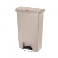 Slim Jim® Utility Container, 13 gallon (50 liter), 17-31/32"W x 11-31/64"D x 28-19/64"H, slim profile, internal hinged lid, includes: liner retainer band, front step-on pedal, small footprint, indoor, resin, beige, FM approved, meets OSHA & OBRA standards (dual rigid stream liner sold separately), Made in USA (16 week lead time)
