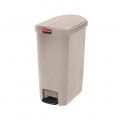 Slim Jim® Utility Container, 13 gallon (50 liter), 20-3/4"W x 13-1/2"D x 28-3/8"H, slim profile, internal hinged lid, end step-on pedal, small footprint, indoor, resin, beige, FM approved, meets OSHA & OBRA standards, Made in USA (16 week lead time)