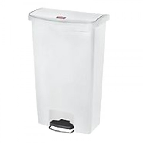 Slim Jim® Utility Container, 18 gallon (68 liter), 19-43/64"W x 12-15/64"D x 31-39/64"H, slim profile, internal hinged lid, includes: liner retainer band, front step-on pedal, small footprint, indoor, resin, white, FM approved, meets OSHA & OBRA standards (dual rigid stream liner sold separately), Made in USA (16 week lead time)