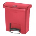 Slim Jim® Utility Container, 4 gallon (15 liter), 14-53/64"W x 9-2/32"D x 15-11/16"H, slim profile, internal hinged lid, includes: liner retainer band, front step-on pedal, small footprint, indoor, resin, red, FM approved, meets OSHA & OBRA standards, Made in USA (16 week lead time)