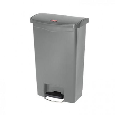 Slim Jim® Utility Container, 13 gallon (50 liter), 17-31/32"W x 11-31/64"D x 28-19/64"H, slim profile, internal hinged lid, includes: liner retainer band, front step-on pedal, small footprint, indoor, resin, gray, FM approved, meets OSHA & OBRA standards (dual rigid stream liner sold separately), Made in USA (16 week lead time)