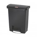 Slim Jim® Utility Container, 8 gallon (30 liter), 16-47/64"W x 10-21/32"D x 21-7/64"H, slim profile, internal hinged lid, includes: liner retainer band, front step-on pedal, small footprint, indoor, resin, black, FM approved, meets OSHA & OBRA standards (dual rigid stream liner sold separately), Made in USA (16 week lead time)