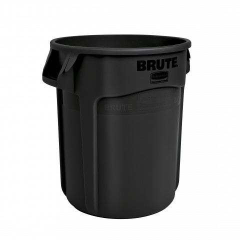 Brute® Container, 10 gallon, 15-5/8" dia. x 17-1/8"H, round, without lid, reinforced rims, built in handles, rimmed base, plastic, black, NSF, Made in USA