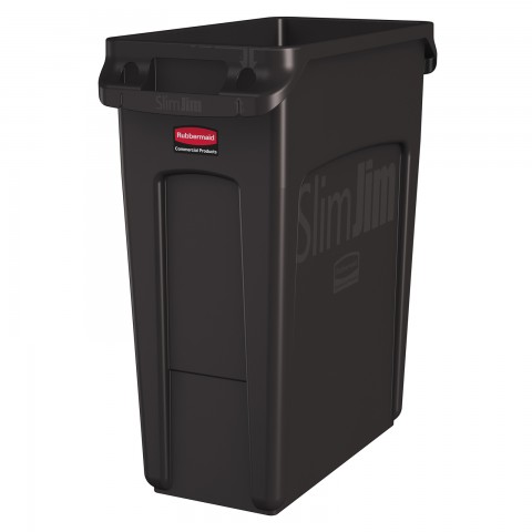 Slim Jim® Container, 16 gallon, 22"L x 11"W x 25"H, with venting channels, molded-in handles, general purpose waste, open type without lid, high-impact plastic construction, brown, Made in USA
