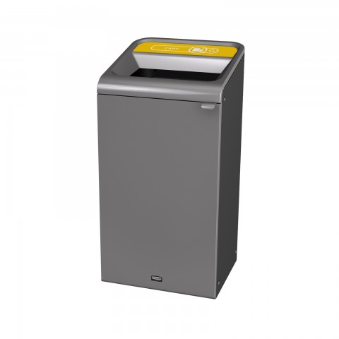 Configure™ Decorative Cans Recycling Container, indoor use, 23 gallon, 1 stream, square, plastic liner, magnetic connection, internal door hinge, powder coated finish, stenni grey, shipped fully assembled, UL Classified, ADA Compliant (6 weeks lead time), Made in USA