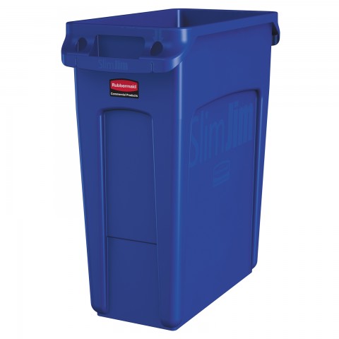 Slim Jim® Container, 16 gallon, 22"L x 11"W x 25"H, with venting channels, molded-in handles, general purpose waste, open type without lid, high-impact plastic construction, blue, Made in USA