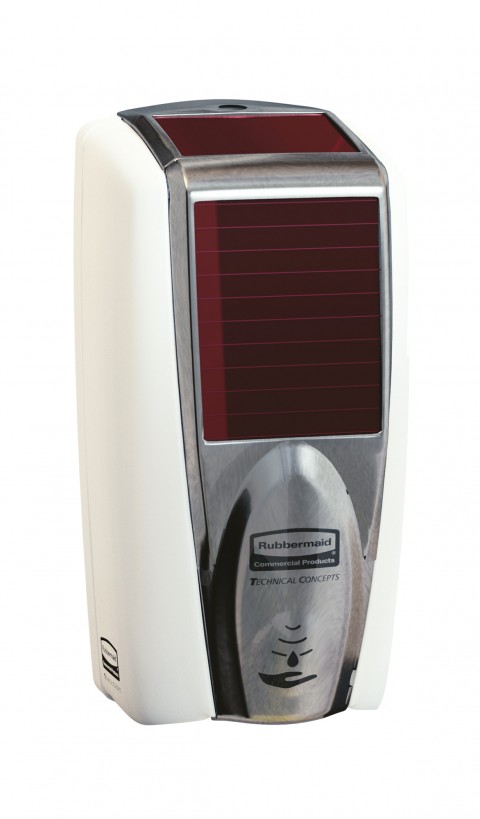 AutoFoam Soap Dispenser, touch-free, with LumeCel™ rechargeable energy cells (stores energy from lighting), holds 1100mL foam soap or sanitizer, controlled dispensing, LUX Detector (determines sufficient lighting), refill indicator, white & pearl grey finish, CE