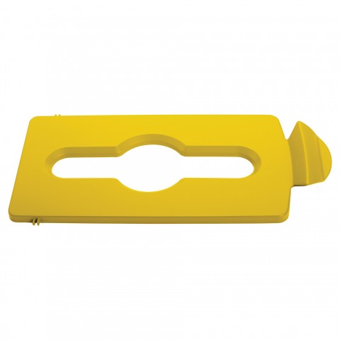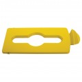 Slim Jim® Mixed Recycling Station Lid Insert, 16-1/2"L x 8"W x 1/2"H, hinged, fits 23 gallon Slim Jim® Recycling containers, polypropylene, yellow