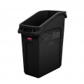 Slim Jim® Container, under-counter, 13-gallon capacity, 11-3/16" x 22-1/4" x 26"H, rectangular, large angled opening, integrated venting channels, bag cinches, rim and base handles, reinforced rim, injection-molded, high-quality resin, black, Made in USA