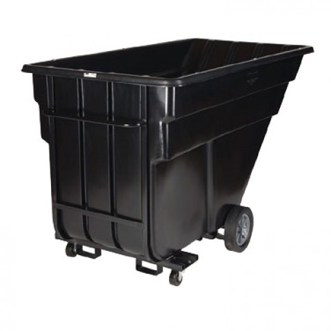 Tilt Truck, mobile, open top, 1-1/2 cu. yd. capacity (approximately 1200 lb.), fully compatible with forklifts, molded polyethylene construction, standard duty, black, Made in USA (12 week lead time)