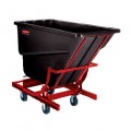 Self-Dumping Hopper, 1/2 cu. yd. capacity (approximately 750 lb.), forklift capable, pull-release safety latch, tilts, molded polyethylene construction, with (4) 6" polyolefin casters, black (Minimum Order QTY = 4 each) (packaged and shipped individually), Made in USA (12 week lead time)
