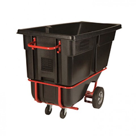 Forkliftable Tilt Truck, rotational molded, standard duty, 1250 lb. capacity, 1 cu. yd., 33-1/2"W x 72-1/4"D x 43-3/4"H, heavy-duty welded fork-lift pockets, seamless one-piece body with reinforced lip, rust, dent, chip/peel resistant, corrosion resistant powder coated steel frame, easy maneuvering/handling, swivel casters, black (Minimum Order QTY = 2 each) (packaged and shipped individually), Made in USA (12 week lead time)