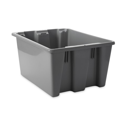 Palletote® Box, 1-5/16 cu. ft., 19-1/2"W x 15-1/2"D x 10"H, allows stacking or nesting, rounded corners, smooth surface, plastic construction, gray, USDA 3A, HACCP, NSF , Made in USA