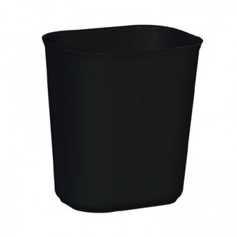Waste Basket, 14 quart, 11-1/8"W x 8-1/4"D x 12-1/4"H, fire resistant, rounded corners, textured finish, fiberglass, black, CSFM & UL approved (contact Rubbermaid for broken case information)