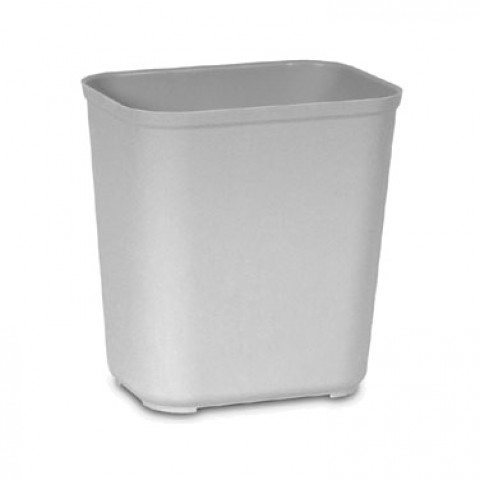 Waste Basket, 28 quart, 14-1/2"W x 10-1/2"D x 15-5/16"H, fire resistant, rounded corners, textured finish, fiberglass, gray, CSFM & UL approved
