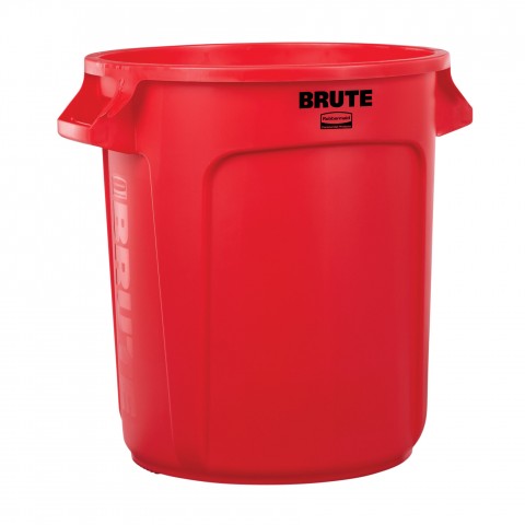 ProSave® BRUTE® Container, without lid, 10 gallon, round, 15-5/8"D x 17-1/7"H, reinforced rims, built in handles, double rimmed base, high-impact plastic construction, red, NSF, Made in USA (contact Rubbermaid for broken case information)
