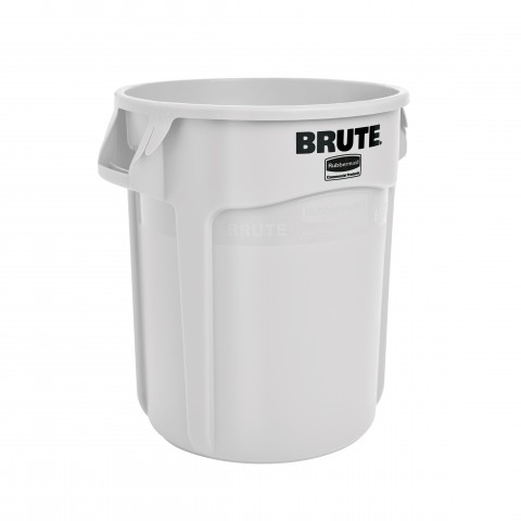 ProSave® BRUTE® Container, without lid, 10 gallon, round, 15-5/8"D x 17-1/7"H, reinforced rims, built in handles, double rimmed base, high-impact plastic construction, white, NSF, Made in USA (contact Rubbermaid for broken case information)