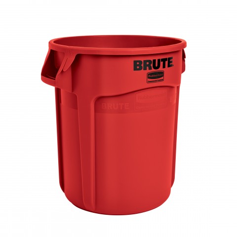 ProSave® BRUTE® Container, without lid, 20 gallon, 19-1/2"D x 22-7/8"H, round, reinforced rims, built in handles, double rimmed base, high-impact plastic construction, red, NSF, Made in USA (contact Rubbermaid for broken case information)