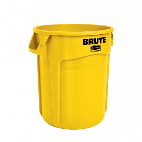 ProSave® BRUTE® Container, without lid, 20 gallon, 19-1/2"D x 22-7/8"H, round, reinforced rims, built in handles, double rimmed base, high-impact plastic construction, yellow, NSF, Made in USA (contact Rubbermaid for broken case information)