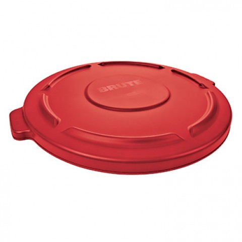 BRUTE® Container Lid, 22-1/4"D x 1-3/8"H, for 32 gallon trash can, heavy duty plastic, red,, NSF, Made in USA (contact Rubbermaid for broken case information)