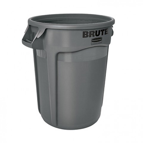 ProSave® BRUTE® Container, without lid, 32 gallon, 22"D x 27-1/4"H, round, reinforced rims, built in handles, double rimmed base, high-impact plastic construction, gray, NSF, Made in USA