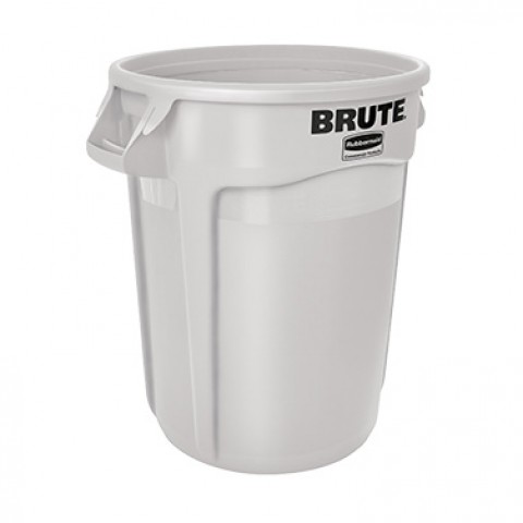 ProSave® BRUTE® Container, without lid, 32 gallon, 22"D x 27-1/4"H, round, reinforced rims, built in handles, double rimmed base, high-impact plastic construction, white, NSF, Made in USA (contact Rubbermaid for broken case information)