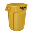 ProSave® BRUTE® Container, without lid, 32 gallon, 22"D x 27-1/4"H, round, reinforced rims, built in handles, double rimmed base, high-impact plastic construction, yellow, NSF, Made in USA (contact Rubbermaid for broken case information)