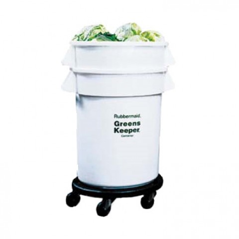 BRUTE® GreensKeeper® Container, with lid, 32 gallon, 25" dia. x 38-1/2"H, with dolly, built-in reservoir, interior construction, white, FDA, HACCP, Made in USA (CANNOT BREAK CASE)