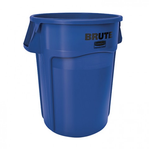 BRUTE® Container, without lid, 44 gallon, 24"D x 31-1/2"H, reinforced rims, built in handles, double rimmed base, high-impact plastic construction, blue, NSF, Made in USA (contact Rubbermaid for broken case information)