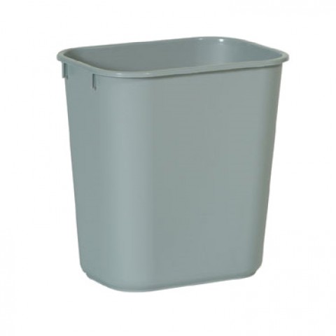 Waste Basket, 13-5/8 quart, 11-3/8"W x 8-1/4"D x 12-1/8"H, small, soft, rolled rims, all plastic, won't chip, rust or dent, gray, Made in USA