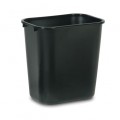 Waste Basket, 28 quart, 14-3/8"W x 10-1/4"D x 15-1/8"H, medium, soft, rolled rims, all plastic, won't chip, rust or dent, black, Made in USA (contact Rubbermaid for broken case information)