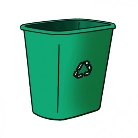 Deskside Recycling Container, 28 qt. , 14-3/8"W x 10-1/4"D x 15-1/8"H, medium, "We Recycle" imprint, green , Made in USA
