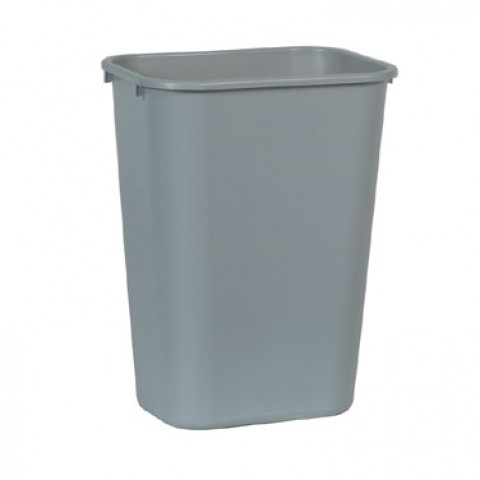 Waste Basket, 41-1/4 quart, 15-1/4"W x 11"D x 19-7/8"H, medium, soft, rolled rims, all plastic, won't chip, rust or dent, gray, Made in USA