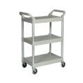 Utility Cart, 33-5/8"L x 18-5/8"W x 37-3/4"H, 200 lb. capacity, (3) shelves, smooth surface, handles, open sides, plastic construction, brushed aluminum uprights, (4) 4" swivel casters, assembly required, platinum, HACCP, Made in USA (CANNOT BREAK CASE)