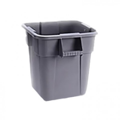 BRUTE® Container, square, without lid, 28 gallon, 21-1/2"D x 22-1/2"H, nesting handles, rounded corners & smooth contours, plastic construction, gray, NSF, Made in USA