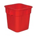 BRUTE® Container, square, without lid, 28 gallon, 21-1/2"D x 22-1/2"H, nesting handles, rounded corners & smooth contours, plastic construction, red, NSF, Made in USA