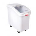 ProSave® Ingredient Bin, 3-1/2 cu. ft., 15-1/2"W x 29-1/2"D x 28"H, mobile, slant front with sliding lid, 32 oz scoop, seamless construction, 3" extra wide casters front fixed & rear swivel, white base/clear lid, USDA, FDA, NSF, Made in USA (CANNOT BREAK CASE)