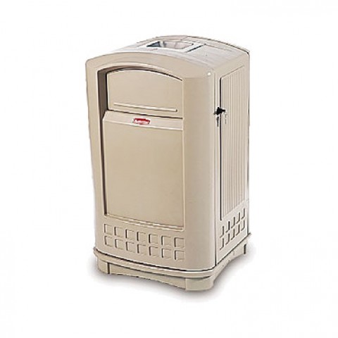 Plaza™ Container with Ashtray, 50 gallon, 24-3/4"W x 25-1/4"D x 42-1/8"H, two spring-loaded swing door, side mounted hinged door, tie-down feature, textured finish, lock latch, beige, FM & CSFM approved, Made in USA