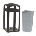 Landmark Series® Classic Container, 50 gallon, 26" square x 46-1/2"H, dome top frame, with 3959 rigid liner, hinged hood with stay-open strap, rainhood cover with openings on all four sides, assembly required (panels purchased separate), black, ADA compliant, Made in USA