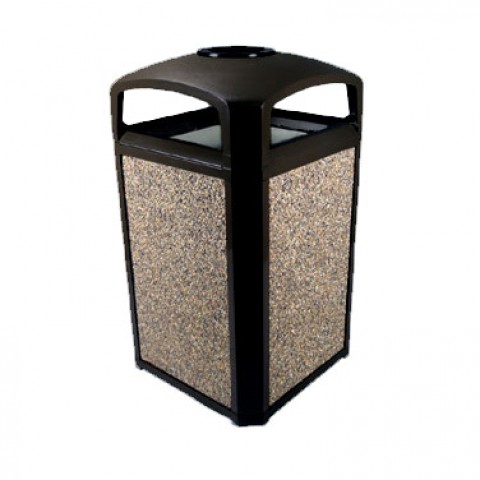 Landmark Series® Classic Container, 50 gallon, 26" square x 46-1/2"H, dome top with ashtray, with 3959 rigid liner, hinged hood with stay-open strap, rainhood cover with openings on all four sides, assembly required (panels purchased separate), black, ADA compliant, Made in USA