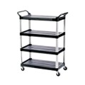Xtra™ Utility Cart, 40-5/8"L x 20"W x 51"H, 300 lb. total capacity, (4) shelves, open sides, (4) 4" swivel casters, assembly required, black, Made in USA