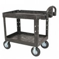 Material Handling/Heavy Duty Utility Cart, 45-1/4"L x 25-7/8"W x 37-1/8"H, 500 lb. total capacity, (2) lipped shelves, open base, polypropylene, (4) 8" pneumatic casters, assembly required, black, Made in USA