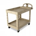 Material Handling/Heavy Duty Utility Cart, 44"L x 25-1/4"W x 39"H, 500 lb. total capacity, (2) lipped shelves, open base, polypropylene, (4) 5" thermoplastic rubber (TPR) casters, assembly required, beige, Made in USA